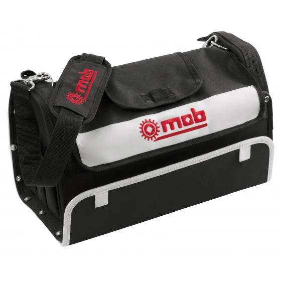 Boite à outils textile. Multiples poches intérieures et latérales. Nouvelles poches intérieures élastiques pour un rangement facilité. Poignée mousse confortable. Bandoulière réglable avec fourreau antidérapant. Base en polypropylène à patins 1,7 cm. Poignée : barre métal surmoulée. Toile 6 Deniers résistante à l’usure et aux accros. Rabat de protection. Côtés renforcés. Modèle avec soute; Volume : 12 L (9 L sans la soute). Dimensions intérieures : L36xl19xH19 cm. Soute de rangement petites pièces et quincaillerie.