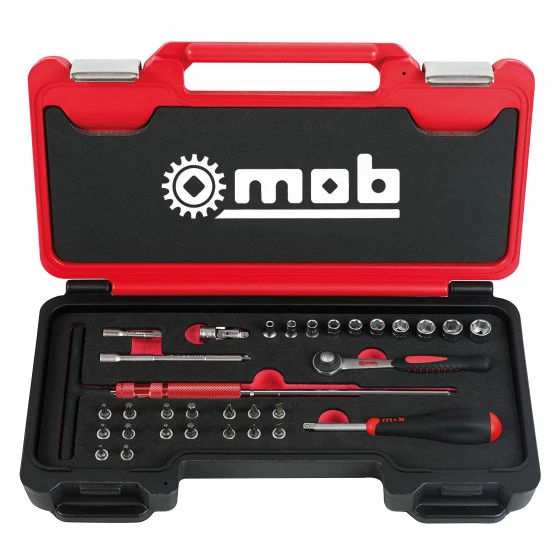 CLIQUET PREMIUM : Verrouillage et déverrouillage rapides des douilles par bouton poussoir. Les douilles ou les accessoires ne se désolidarisent pas du cliquet. L’angle de rotation de 5° (cliquet à 72 dents) assure une reprise très performante dans des espaces réduits. Les têtes des cliquets ont un encombrement réduit pour offrir l’accessibilité maximale. Tête ronde : le changement du sens de serrage se réalise facilement avec le pouce sur toute la circonférence de la tête. Manche confortable bimatière étudié pour travailler dans toutes les positions : polypropylène pour plus de résistance, élastomère pour une bonne prise en main (grip). Liaison corps-manche du cliquet étudiée pour ne pas gêner la main lors de la prise. DOUILLES : La suppression des angles vifs des carrés augmente leur résistance et protège les écrous contre le matage. La manipulation des douilles est rendue facile grâce à un épaulement extérieur prévu pour la prise. Marquage de la dimension sur tout le pourtour. Douilles 6 pans pour serrages puissants. COFFRET : en Polyéthylène Haute Densité (PEHD), ne s’abîment pas aux chocs comme des coffrets métalliques, qu’il est nécessaire de débosseler. Fermoirs métalliques. Mousse bicolore pour un repérage facile des manquants.
