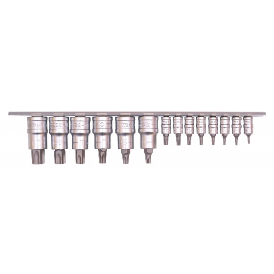 8 douilles tournevis Torx 1/4 : T8-T9-T1-T15-T2-T25-T27-T3 et 5 douilles tournevis Torx 1/2 : T4-T45-T5-T55-T6