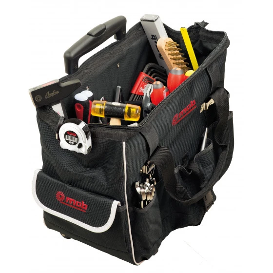 Roues robustes et extra larges Diamètre 4 mm = Stabilité améliorée. Poignée à main en relais. Ouverture à soufflet à 1 %. 15 poches intérieures et 1 poches extérieures. 2 “tapeholders” (boucle métal pour mesure). Fermeture à glissière de protection. Base synthétique dure + 4 patins élastomère. Textile à 6 derniers indéchirable. Capacité de chargement élevé : 68 kg. Volume : 44 L. Dimensions intérieures : L45 x l25 x H39 cm. Composition : 12 clés mixtes : 6-7-8-1-11-12-13-14-16-17-18-19 mm // 8 tournevis bimatière : 4 fentes : 3,5×75 – 5,5×125 – 6,5×15 – 8×15 mm / 2 Phillips PH1-PH2 / 2 Pozidriv PZ1-PZ2 // 3 tournevis isolés 1V : 4×1 mm / PH1 / PH2 // 1 testeur // 9 clés mâles : 1,5-2-2,5-3-4-5-6-8-1 mm // 6 pinces : 1 coupante diagonale 16 mm / 1 universelle 18 mm / 1 à bec demi rond 2 mm / 1 multiprise superposée 24 mm / 2 pince à circlips : intérieur et extérieur 19-6 mm // 1 cisaille universelle droite 21 mm // 1 cutter 18 mm // 1 couteau d’électricien à 2 lames // 1 scie à métaux + 5 lames HSS + 5 lames carbone // 1 mesure 3 m // 1 réglet 2 mm // 1 tracette carbure avec clips // 1 niveau de 4 cm // 1 marteau rivoir 36 mm manche Carbon // 1 maillet avec embouts en plastique 32 mm // 1 burin 2 mm // 4 chasses goupilles : 2-3-4-5 mm // 1 brosse métallique à manche // 2 limes 2mm : 1 plate à main + 1 demi-ronde